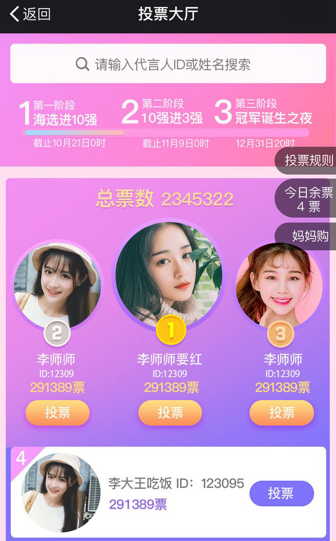投票活动是:“让用户参与活动,拉好友为自己投票,赢取奖品”的活动。