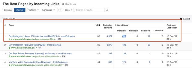 通过图片可以看到,排名最好的商业转化页面,也是内链构建的最多的页面。