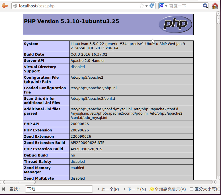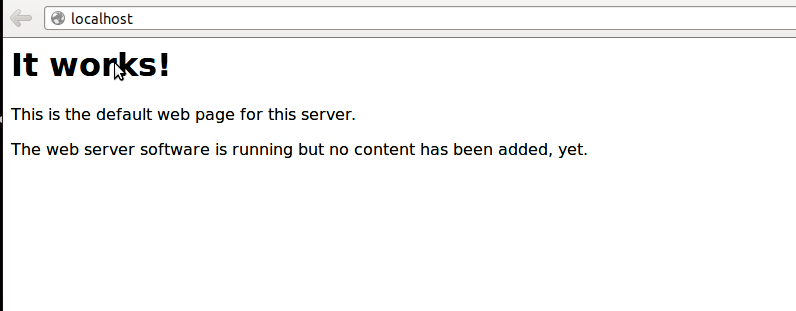 安装完成后,web 项目根目录默认在/var/www/, 为了简单起来,对LAMP不做任何配置。打开浏览器,输入 http://localhost/ 测试安装是否成功。下是测试成功的例子。