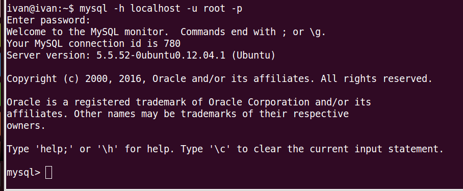 使用mysql客户端连接MySQL数据,命令如下:#mysql -h localhost -u root -p