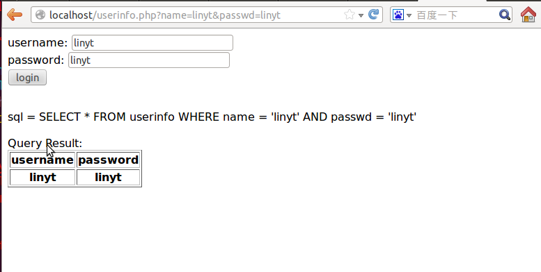 本例中输入用户名linyt和密码linyt情况,SQL语句的拼接过程如下: