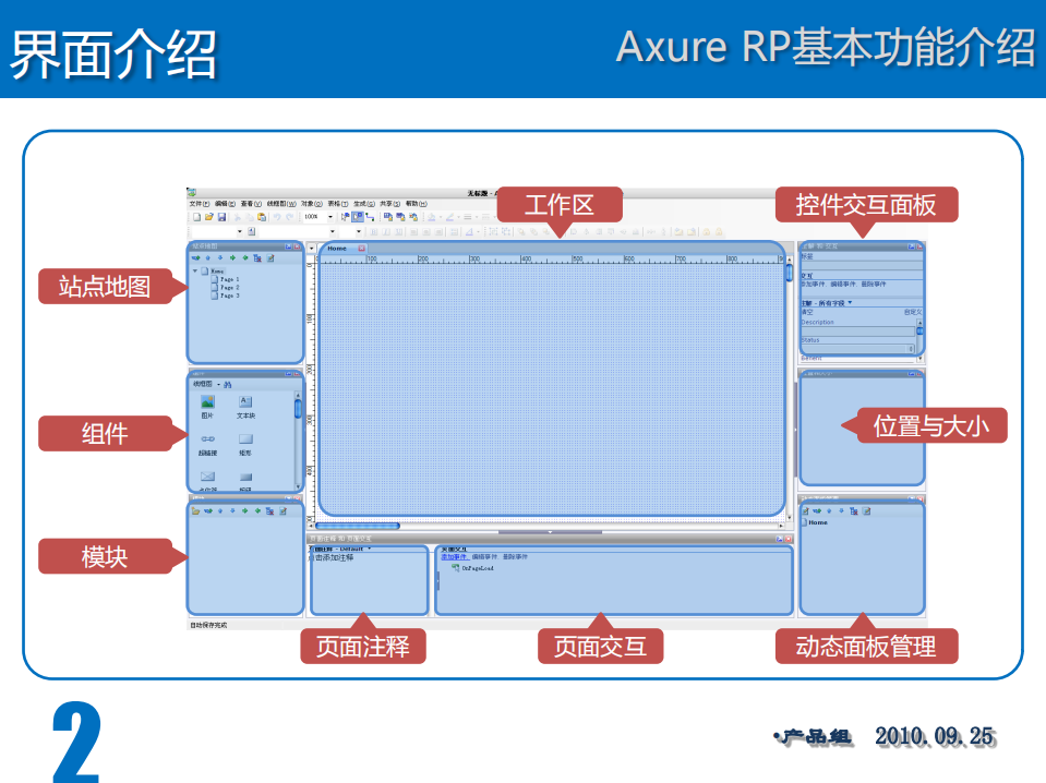 资源名称: 基本功能介绍 资源目录: 界面介绍 常用组件 简单交互实现 基本功能介绍 站点地图 站点地图是一个页面导航面板 在这里面可以对所设计的页面迚行添加、删除、重命名和组织 组件面板中有线框图组件和流程图组件,用这些组件迚行线框图和流程图的设计。这里显示的是所有的组件 后面的一部分是流程图组件 资源截图: