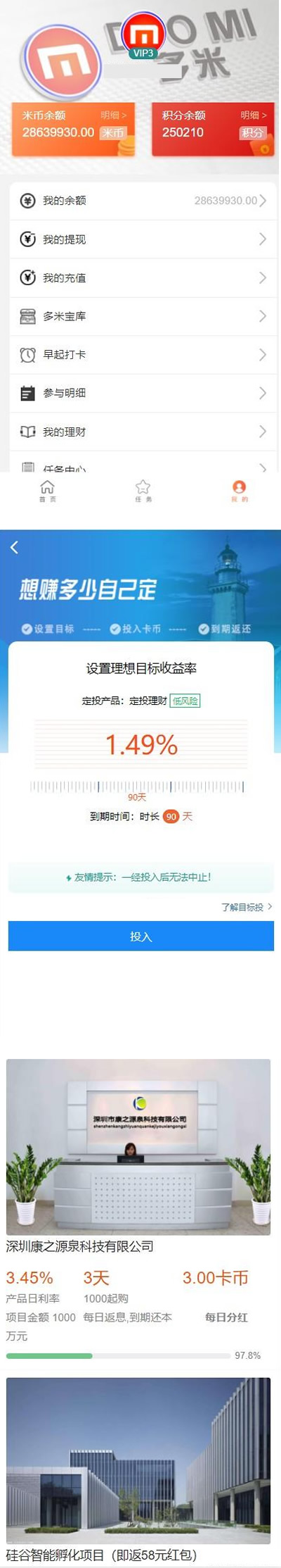 袋鼠投资理财,本程序有技步跑步功能,余额宝功能,早起打卡,积分商城,抽奖功能等各方面为一体的综合理财项目。