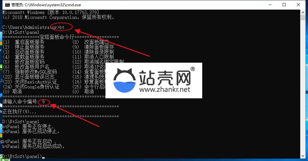 2:(1)Linux进入SSH,输入bt,选择9,清空面板缓存