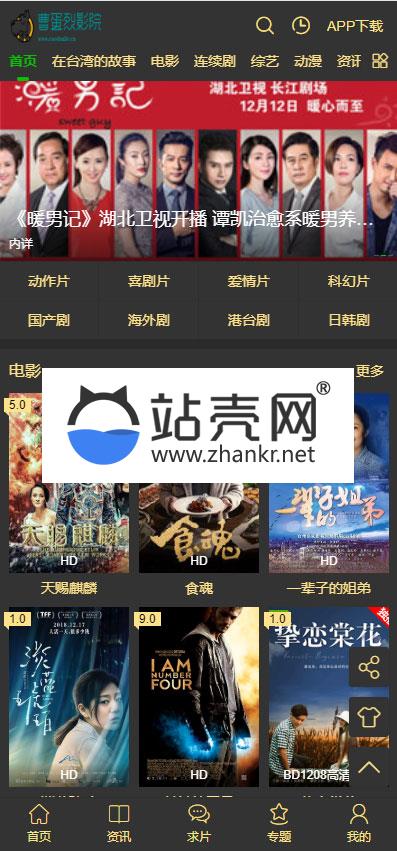 苹果cmsv10大气黑色风格响应式模板 PC+WAP自适应_源码下载