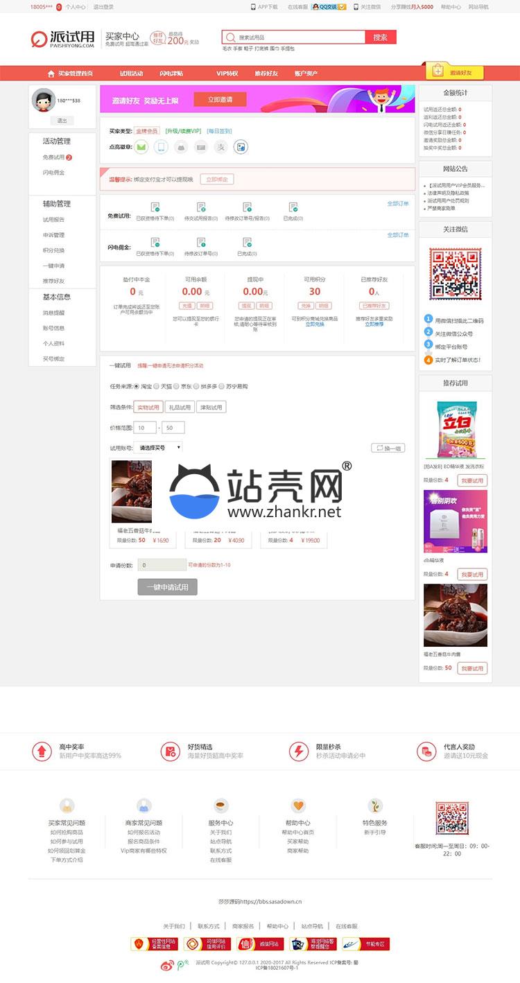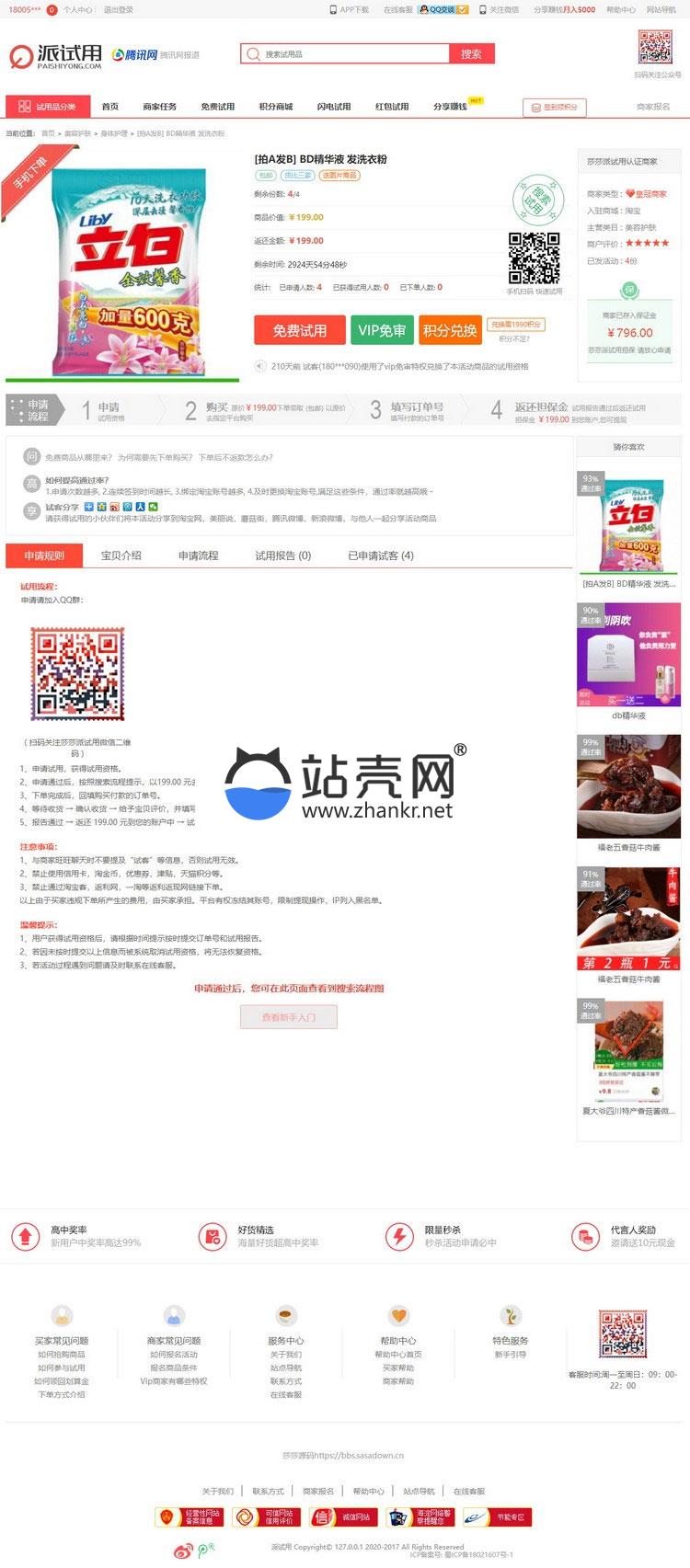 源码介绍 内核上制作而成,是全国领先的免费试用网站 程序全开源无加密!带有 手机端, 源码,已修复实名认证联网接口,而且带有安装教程。程序升级到最新 版。 如何盈利 收取商家 会员给费 收取商家返利活动服务费 收取商家试用活动商品推广费 平台广告费 淘宝客佣金 活动保证金 其他盈利模式 在于您的运营 国内目前最具有代表性的成功案例有,众划算,试客联盟,折 ,卷皮网等