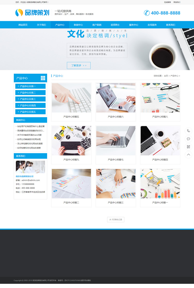 (带手机版数据同步)品牌策划设计企业通用类网站源码 蓝色营销型互联网策划类网站模板