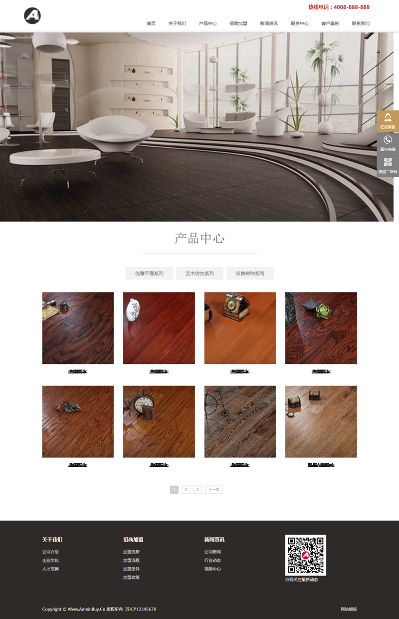 (自适应手机版)响应式木地板木业织梦模板 html5家装地板实木网站源码下载 该模板是非常容易存活的,这样的网站很容易吸引访客点击,提升ip流量和pv是非常有利的,随便挂点联盟广告都能养活网站。 本套织梦模板采用现在非常流行的全屏自适应布局设计,且栏目列表以简洁,非常时尚大气。页面根据分辨率大小而自动排版,很大程度上改善了页面宽度兼容问题, 适应大部分显示器分辨率尺寸哦。模板整体以多种颜色为主色调,适合做各种类型的网站。 同一个后台管理三网合一简单方便,体验极佳 1、该模板代码干净整洁; 2、效果相当的炫酷,相当简洁大气高端,模板简单,全部已数据调用,只需后台修改栏目名称即可 3、适用于木地板织梦模板、家装木业网站源码; 4、网站手工DIV+css,代码精简,首页排版整洁大方、布局合理、利于SEO、图文并茂、静态HTML; 5、首页和全局重新做了全面优化,方便大家无缝使用;