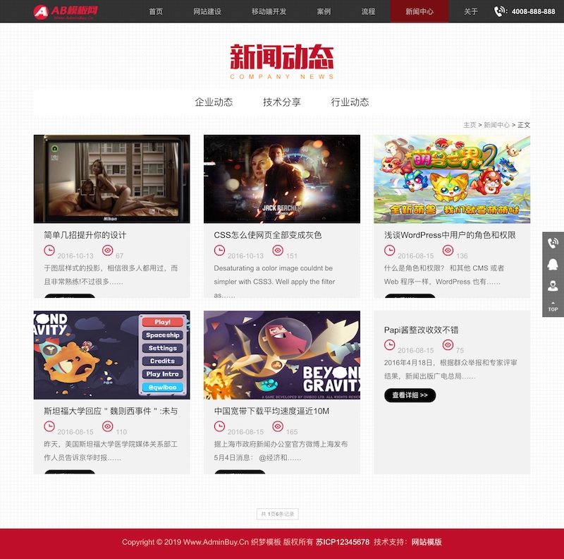 源码描述: (自适应手机版) 响应式网站织梦模板源码 网络工作室织梦网站源码下载 该模板是非常容易存活的,这样的网站很容易吸引访客点击,提升 流量和 是非常有利的,随便挂点联盟广告都能养活网站。 本套织梦模板采用现在非常流行的全屏自适应布局设计,且栏目列表以简洁,非常时尚大气。页面根据分辨率大小而自动排版,很大程度上改善了页面宽度兼容问题, 适应大部分显示器分辨率尺寸哦。模板整体以多种颜色为主色调,适合做各种类型的网站。 同一个后台管理三网合一简单方便,体验极佳 、该模板代码干净整洁; 、效果相当的炫酷,