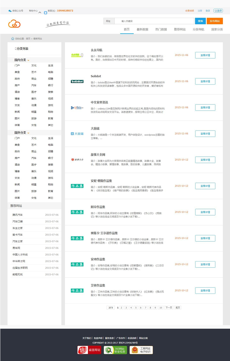 蓝色大气站长目录导航网站源码 帝国cms内核
