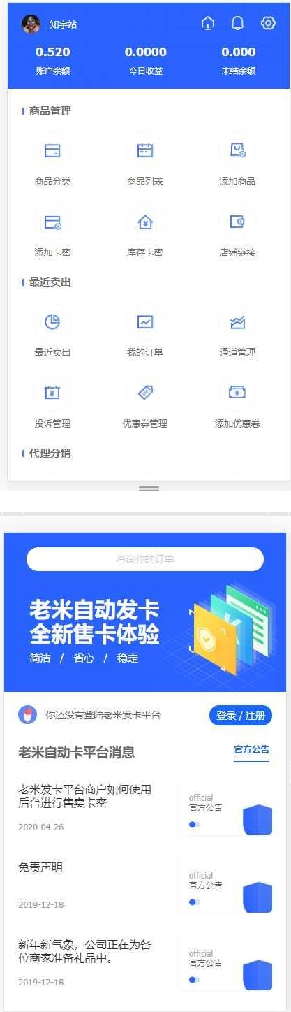 【知宇发卡】2020.05首发知宇企业发卡510带橙色模版+手机端模版+商户模版等支付网站源码