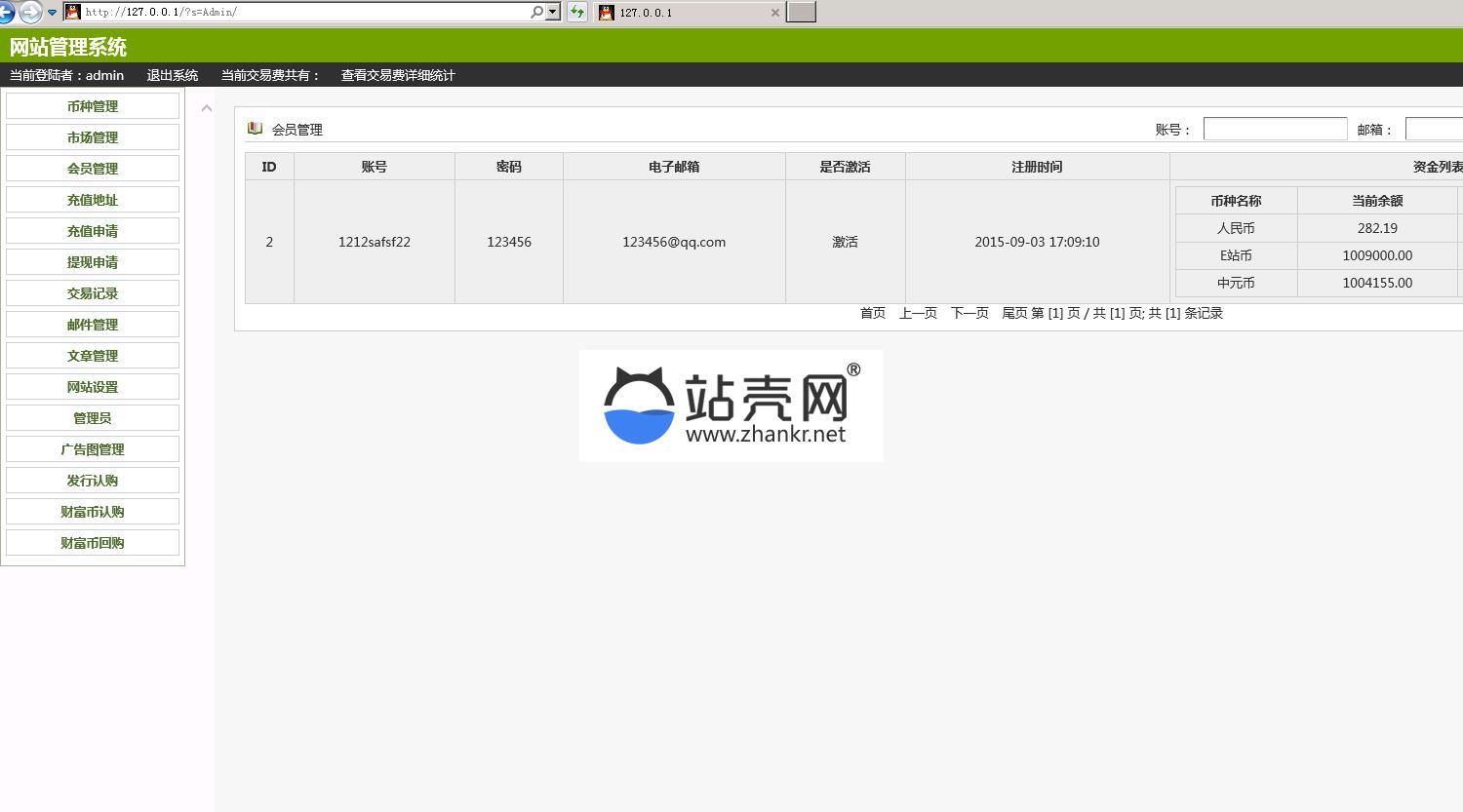http://域名/Admin 用户名:admin 密码:abc567