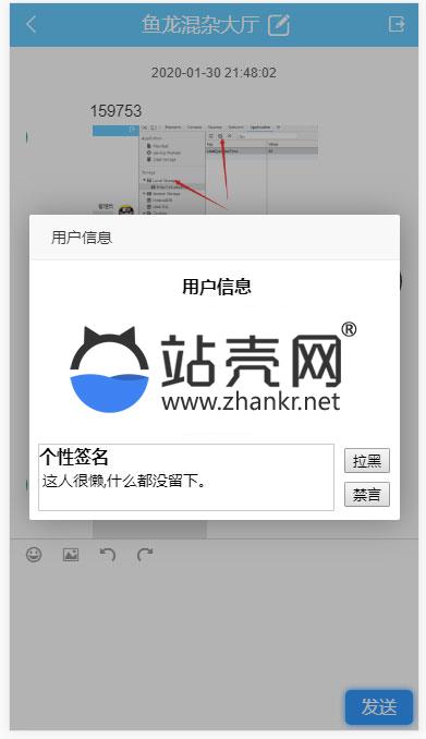 程序前台与后台自适应PC与移动端,支持一对多交流,可以自由创建新的房间与解散创建的房间,集成签到功能,等级功能,房间创建者可以对用户进行禁言、拉黑处理,房间可以由房间创建者自由设置进入密码,房间内支持 常规的文字消息、表情、支持自定义图片消息、图片可用本地或者图片外链。
