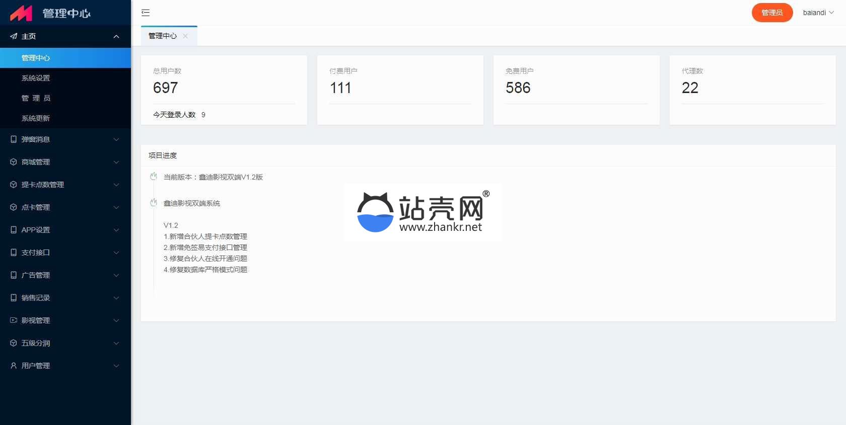 源码介绍 源码描述: 附带全套视频搭建教程!如果出现搭建出来依然有授权提示的,可以替换到程序的替换包解压覆盖即可! 功能介绍: 无限卡密 无限代理 推送弹窗 播放记录 广告设置 价格设置 解析接口 免签接口 积分商城 推广分享 五级分销 卡密分销 断网识别 签到功能 在线更新 更新日志: 新增合伙人提卡点数管理 新增免签易支付接口管理 修复合伙人在线开通问题 修复数据库严格模式问题 后台改为一键式安装!搭建方便快捷!