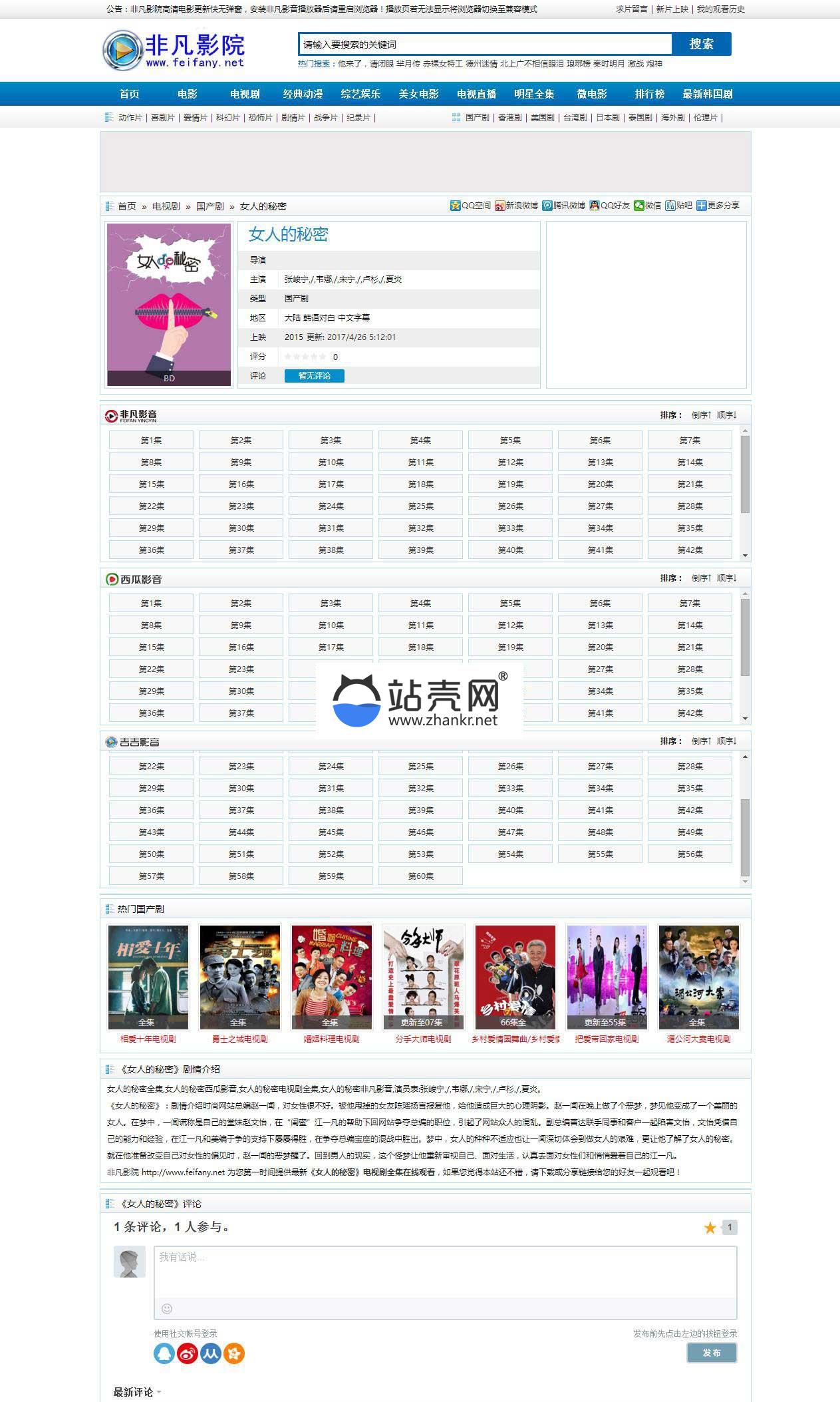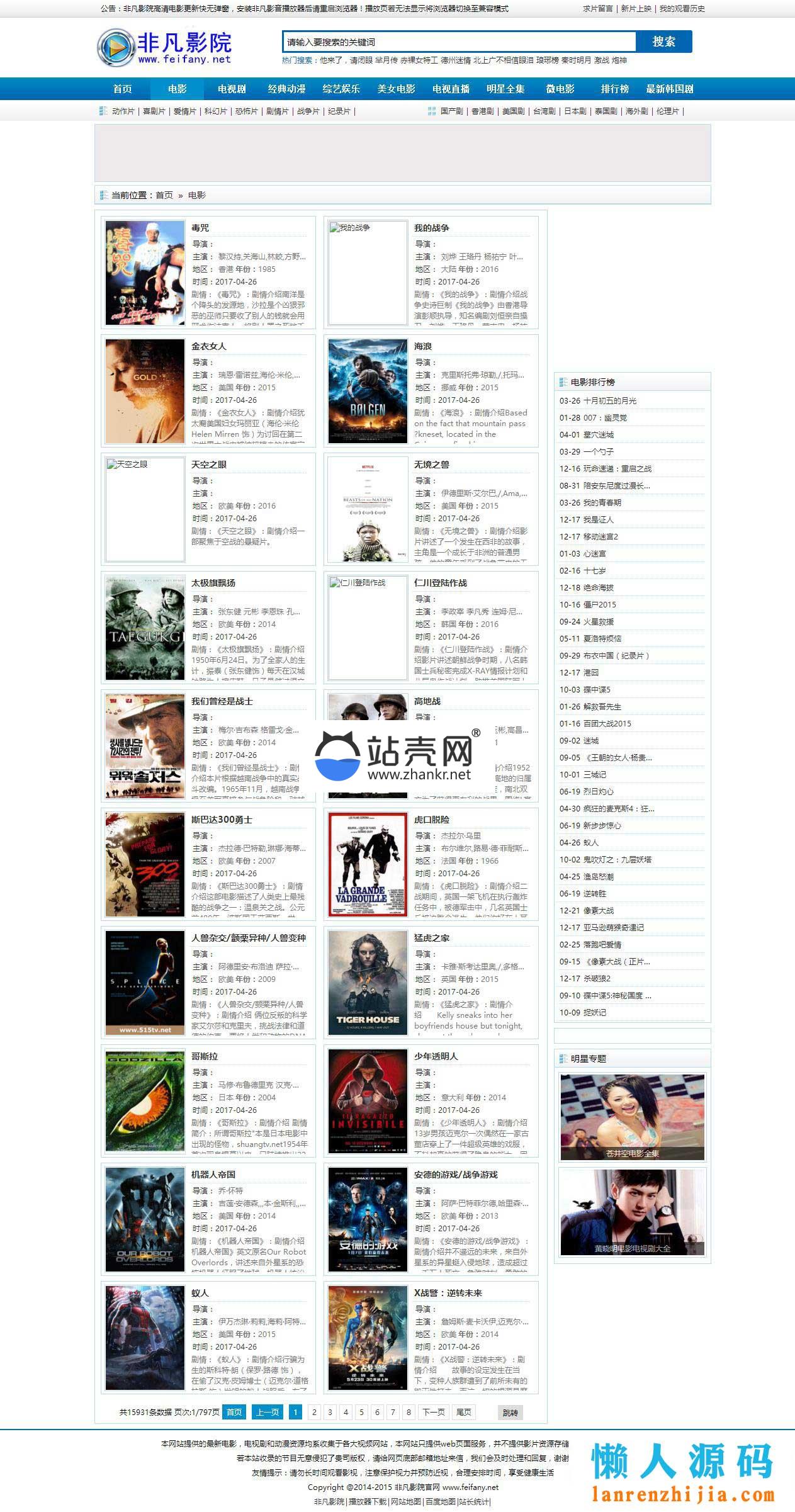 海洋CMS仿非凡在线影院第17版响应式布局电影网站模板_源码下载