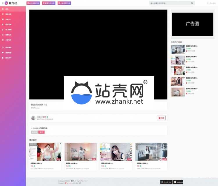 粉色精美的苹果cmsv10在线视频图片小说综合网站源码_源码下载