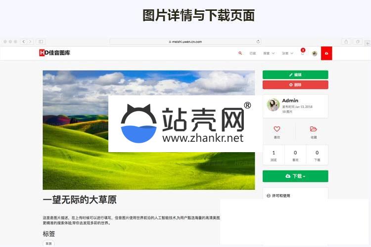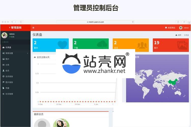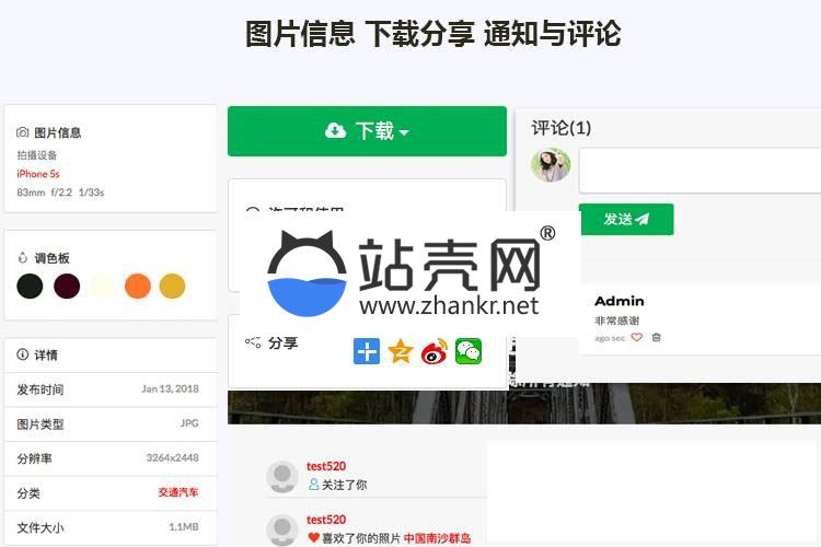 源码介绍 安装环境推荐 系统, , , 特点: 框架 收藏系统 实时通知 图片搜索 按颜色与相机搜索 会员可以无限制上传 修改名称、电子邮件、密码 百度分享 支持 管理员后台: 更改网站名称 管理常规设置和限制 设置关键字与描述 管理分类 管理会员