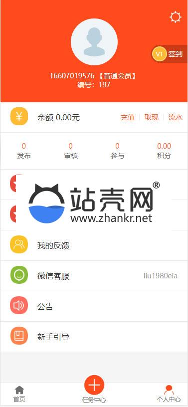 支持发布任务,推广佣金,简洁清爽UI!可以封装app