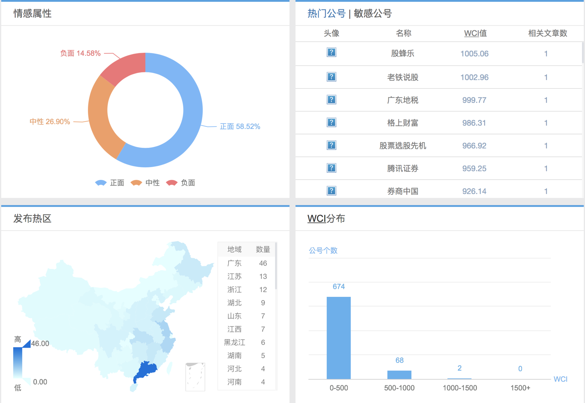 举例:对“股票”这一关键词做10分钟监控,在微信端采集的数据,形成了如下分布图: