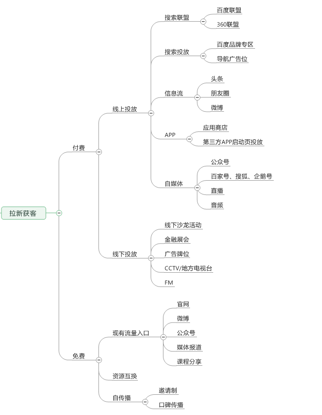 1、拉新渠道,有免费和付费的渠道