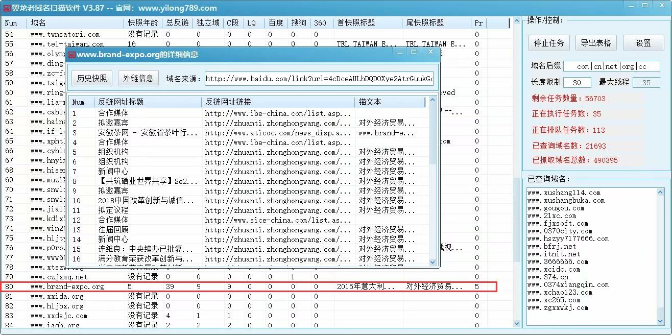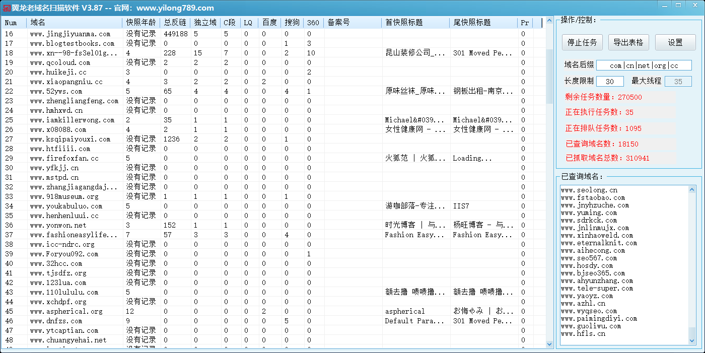 翼龙老域名扫描软件是根据关键词进行老域名挖掘,一天可以挖掘几百到几千个老域名,每个老域名都有详细的信息供你判断老域名好坏,例如反链,pr,历史建站数据等等信息。