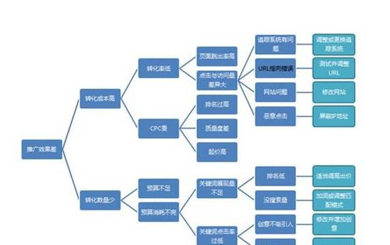 SEM是一个系统营销过程,必然遵循营销漏斗模型,账户层级的投放和优化只是营销漏斗模型的开端,还需要了解营销漏斗模型在页面阶段与转化阶段的影响因素和相应的数据反馈。解决方法:对照下图,去思考每一个环节的影响因素,每个因素可以通过哪些操作实现优化。
